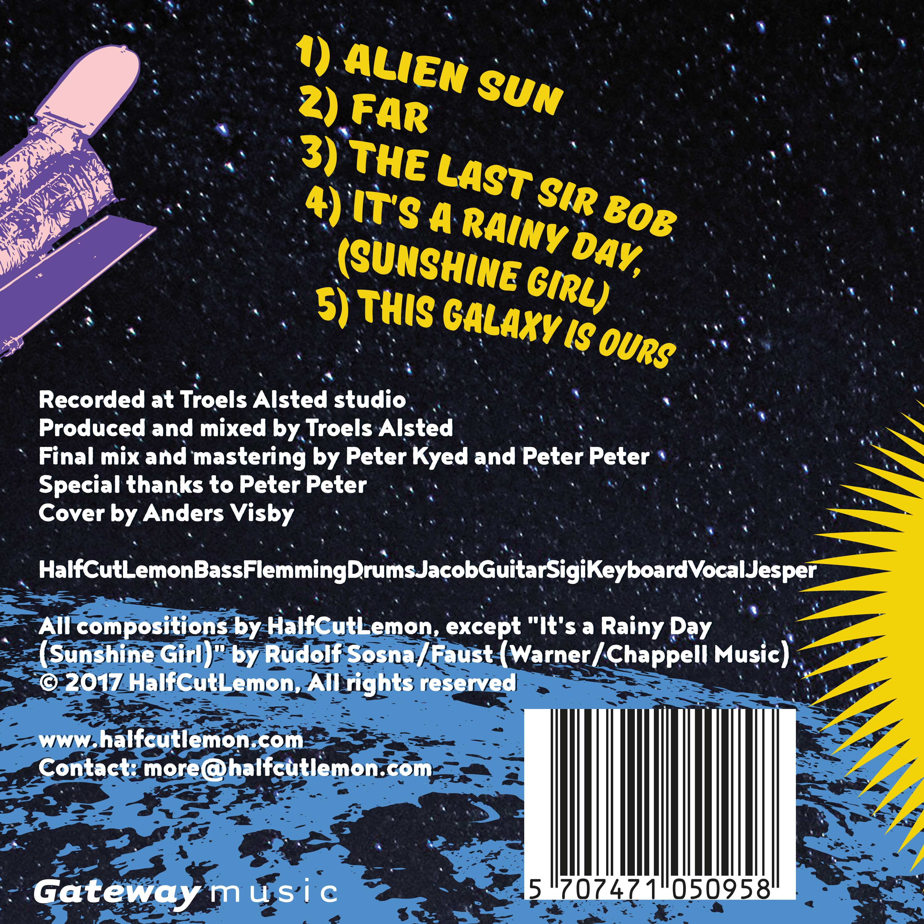 All compositions by HalfCutlemon except *"It's a Rainy Day (Sunshine Girl)" by Rudolf Sosna/Faust (Warner/Chappell Music). ©2017 HalfCutLemon. All rights reserved.